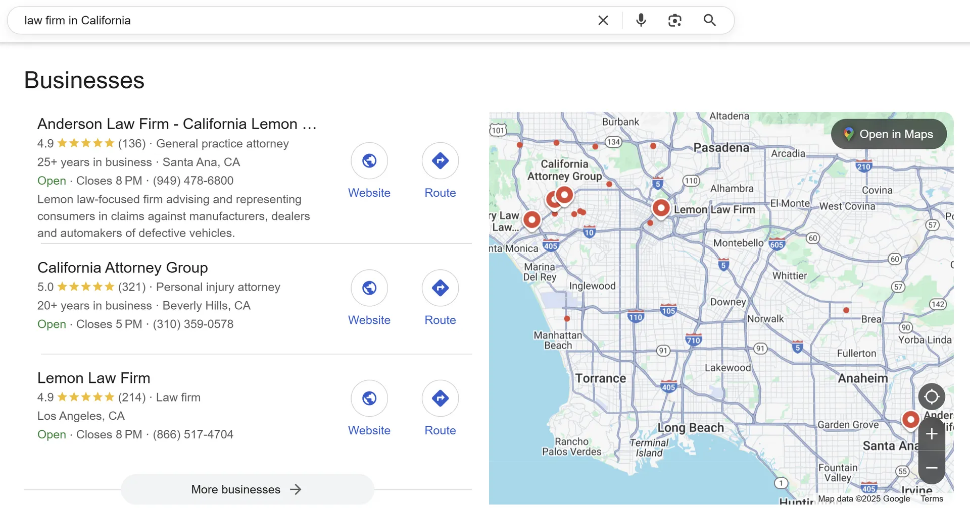 Local SEO is where most law firms win or lose. Unlike national businesses, law firms rely on clients in their own backyard. Appearing in the top three map results for a “lawyer near me” query can be more valuable than organic rankings.