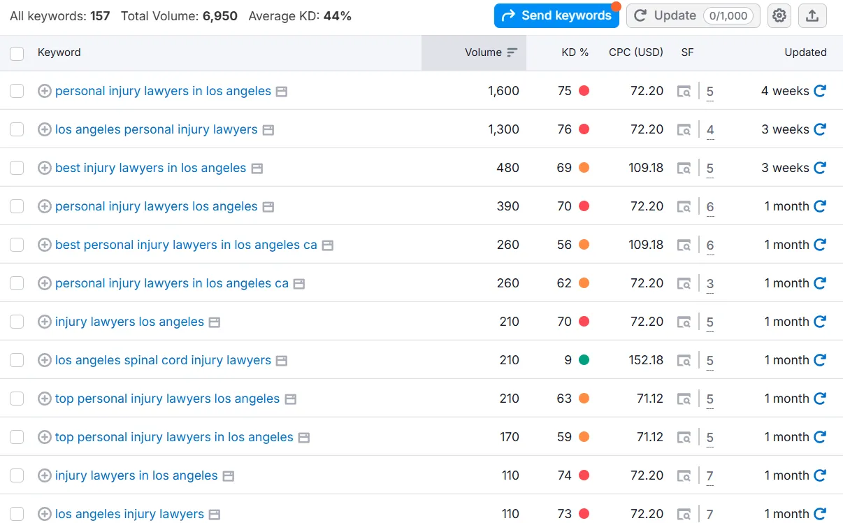 For example, instead of trying to rank for “Los Angeles car accident lawyer” — where you’re battling billion-dollar firms — you might target “rear-end accident lawyer Glendale” or “dog bite attorney in Torrance.” The search volume might look small, but each of those terms represents potential clients actively searching for help. Collect enough of these small wins, and you create a powerful pipeline of organic traffic that adds up over time.